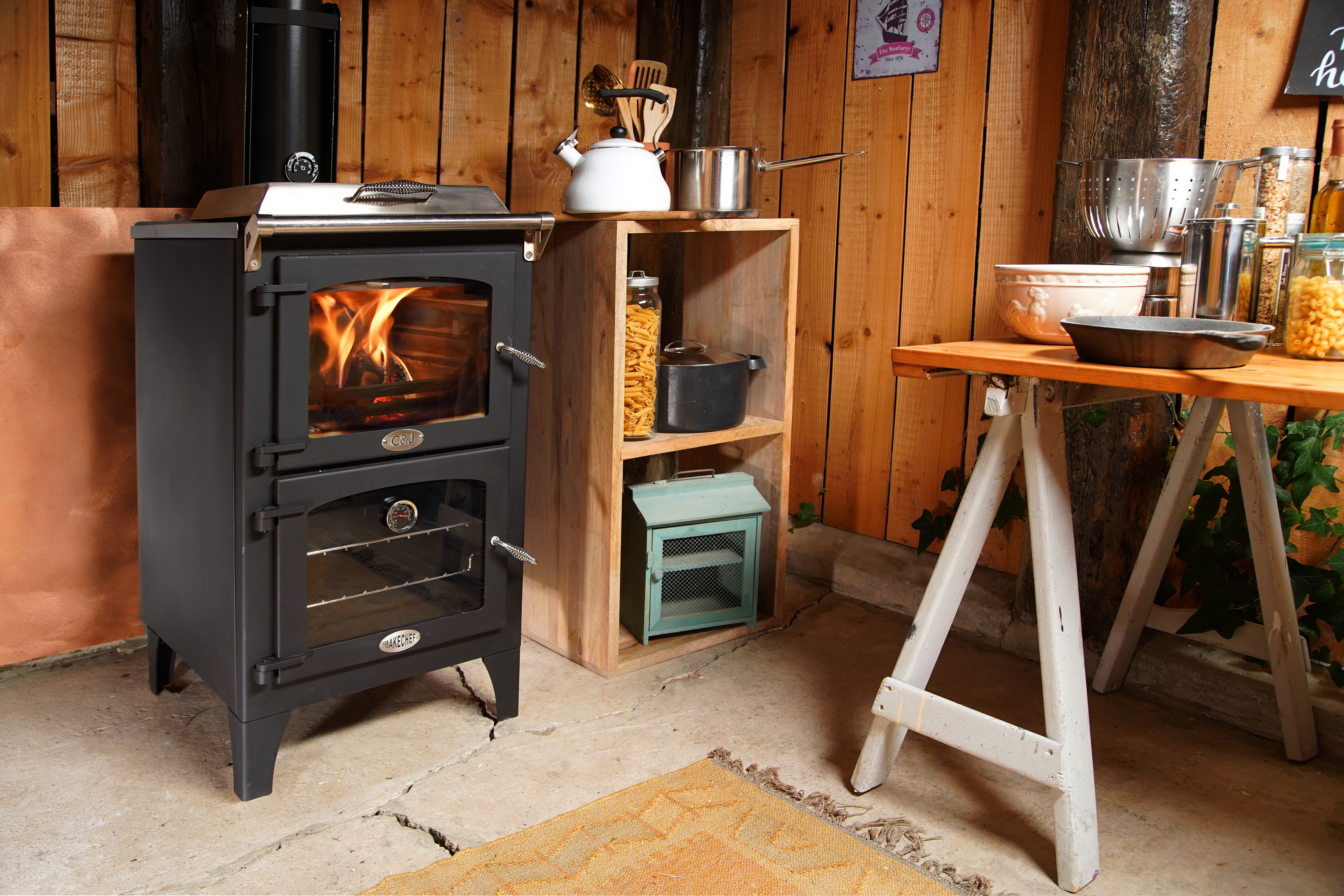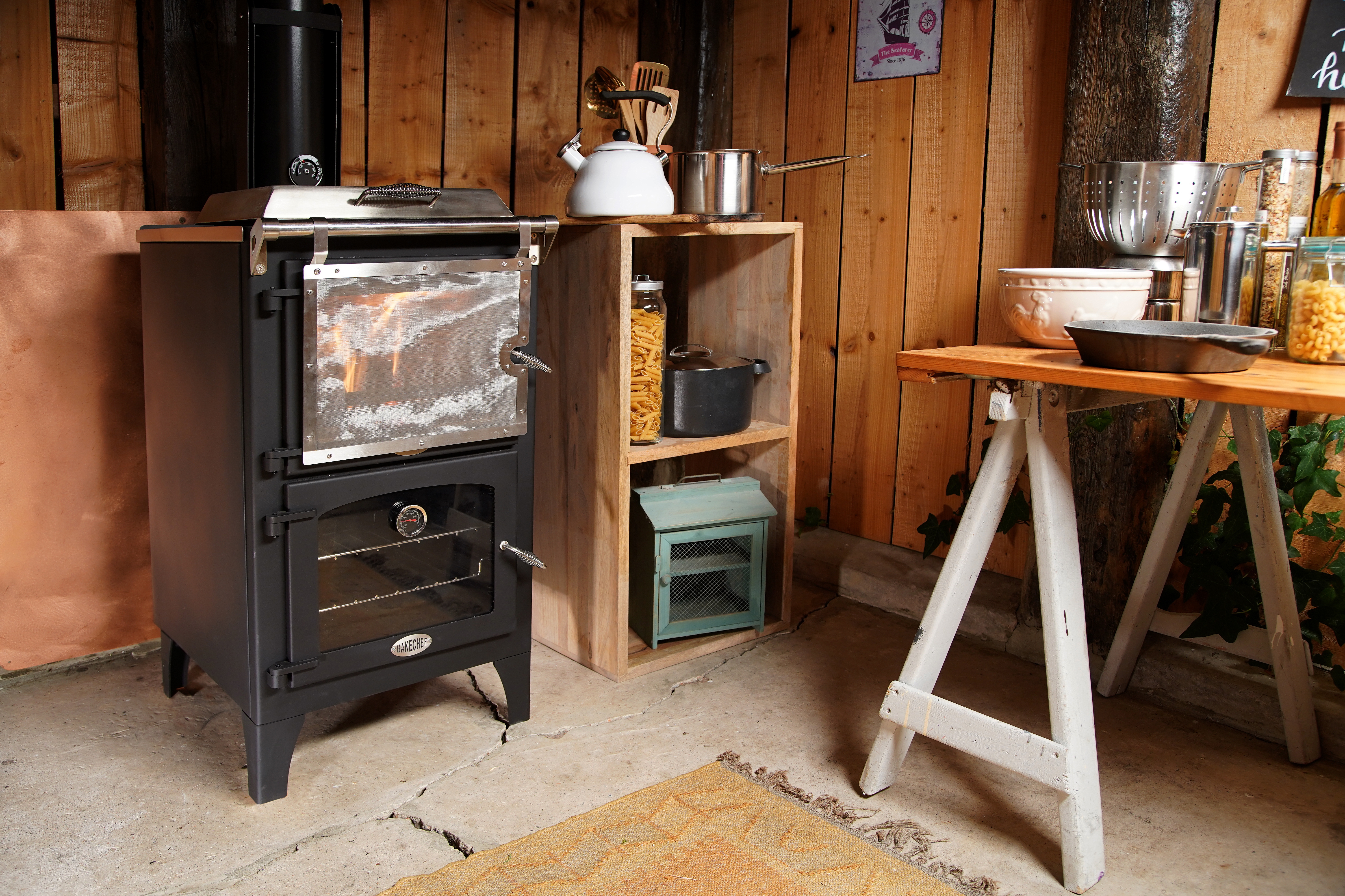 Go Eco BakeChef Cooking Stove. Now includes Black Firebox Heatshield. ClearSkies Level 5 certified.
